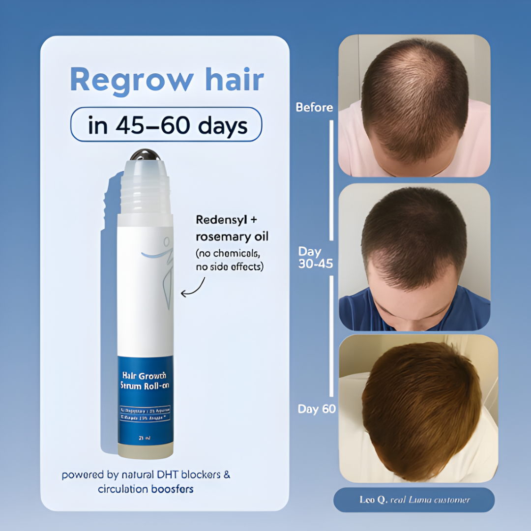 GrowEase™ uses a breakthrough bio-active formula that reawakens dormant hair follicles while deeply nourishing the scalp. No pills, no chemicals—just pure, visible growth and stronger strands with every roll.